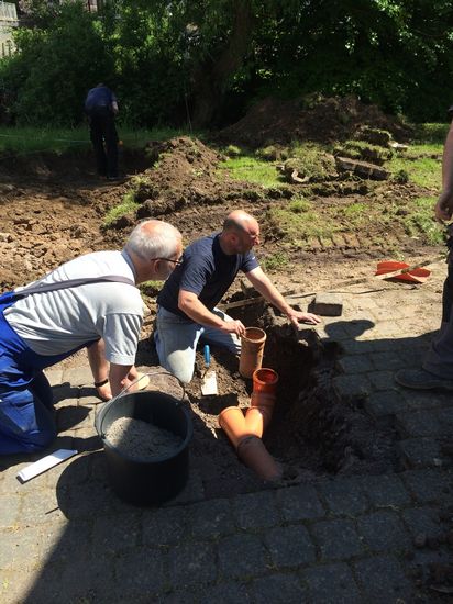 Die Entwässerung wurde verlegt und die Baugrube verfült